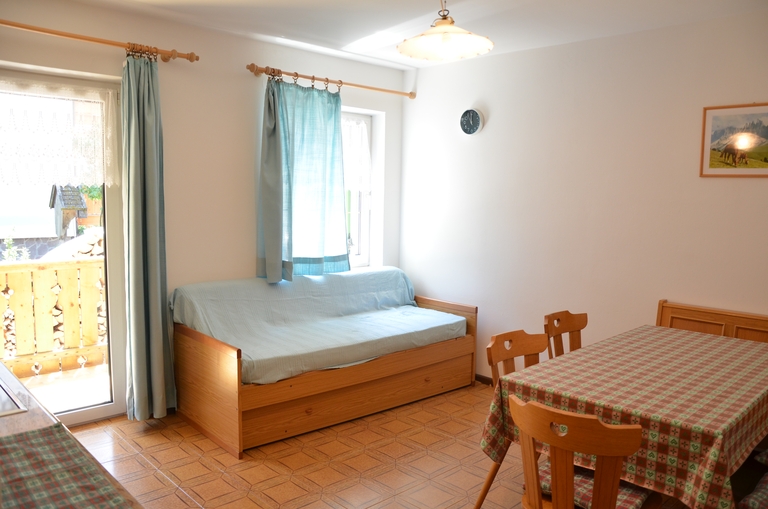 L'appartamento è composto da 1 camera da letto (2 letti e 1 letto aggiuntivo), soggiorno con angolo cottura, bagno e balcone.